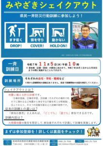 県民一斉防災訓練「みやざきシェイクアウト」について